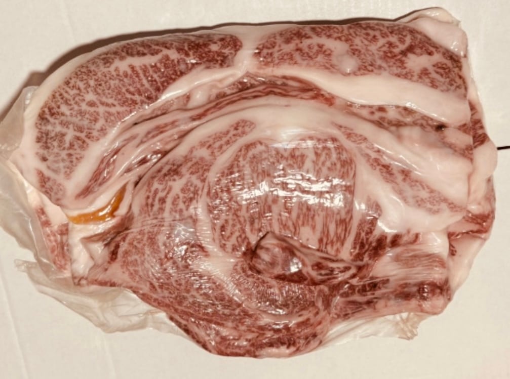 霜降りが入った希少部位の断面を集めた贅沢なミックス部位。見た目の通り霜降りが非常に豊かで、焼くだけで旨味と脂の甘みが口いっぱいに広がります。